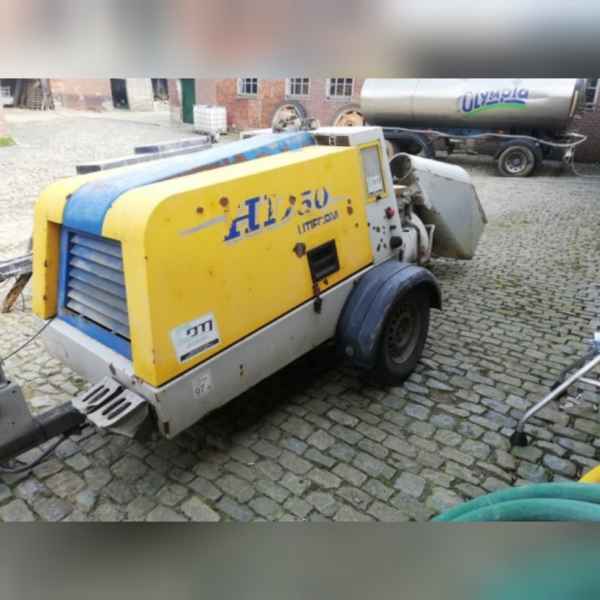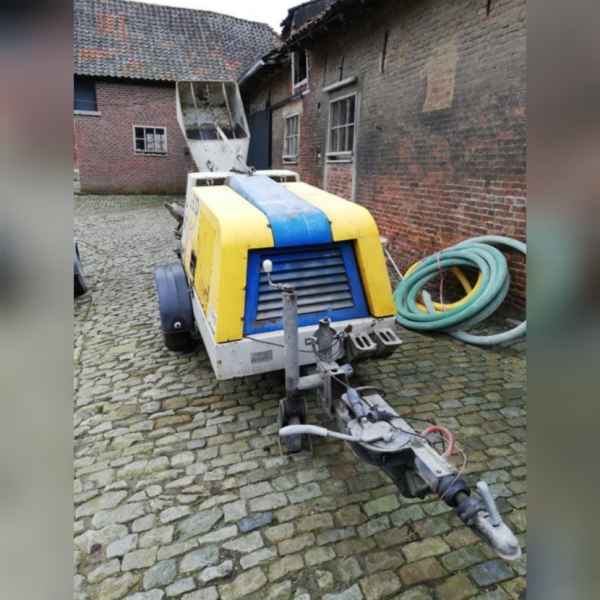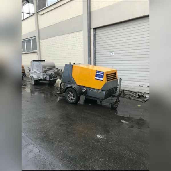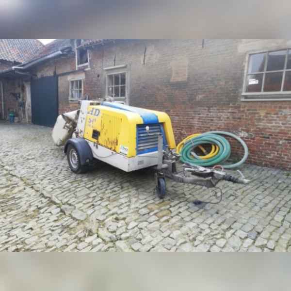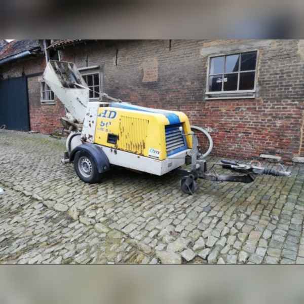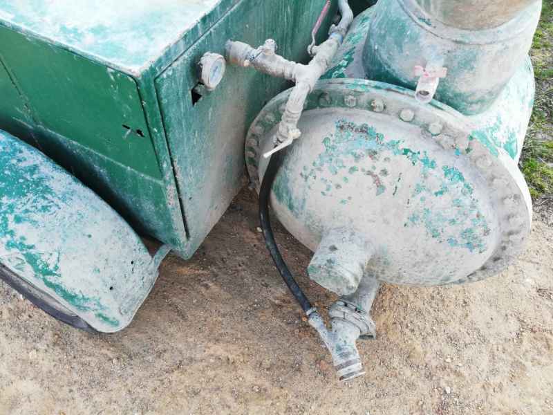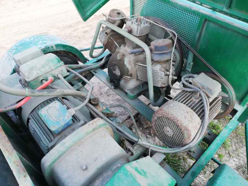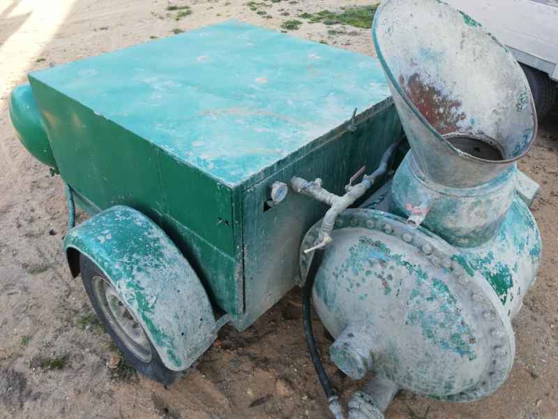 Пневмонагнетатель одноосный, прицепной, мощность 380Вт для подачи полусухих и сухих смесей. 3х цилиндровый компрессор. В комплекте: электро-удлинитель 20 метров, 40 метров шланга и гаситель.